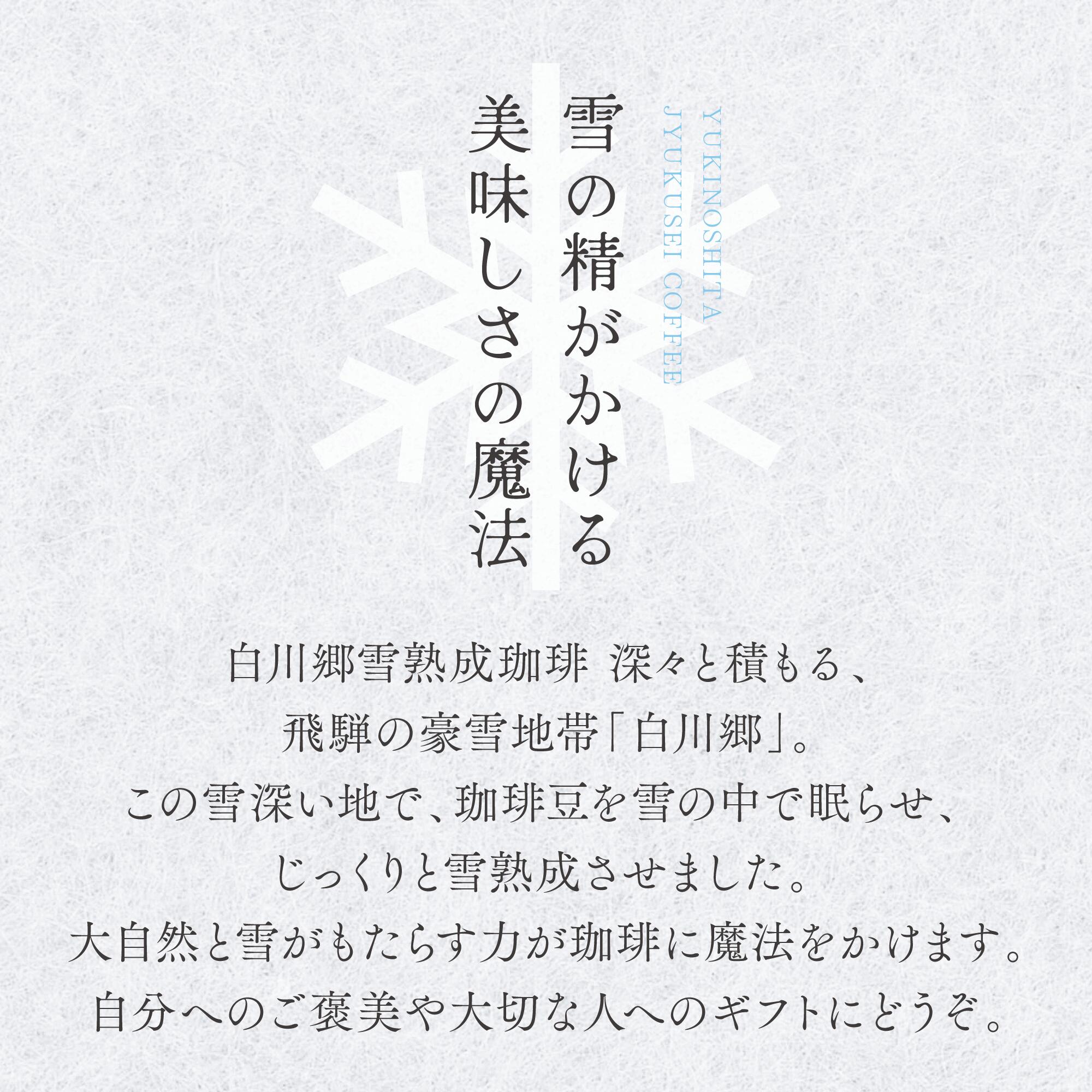 雪の下熟成の豊かな香りを存分に堪能できる大容量セット。来客時のおもてなしや、珈琲好きの方への贈答品としても喜ばれます