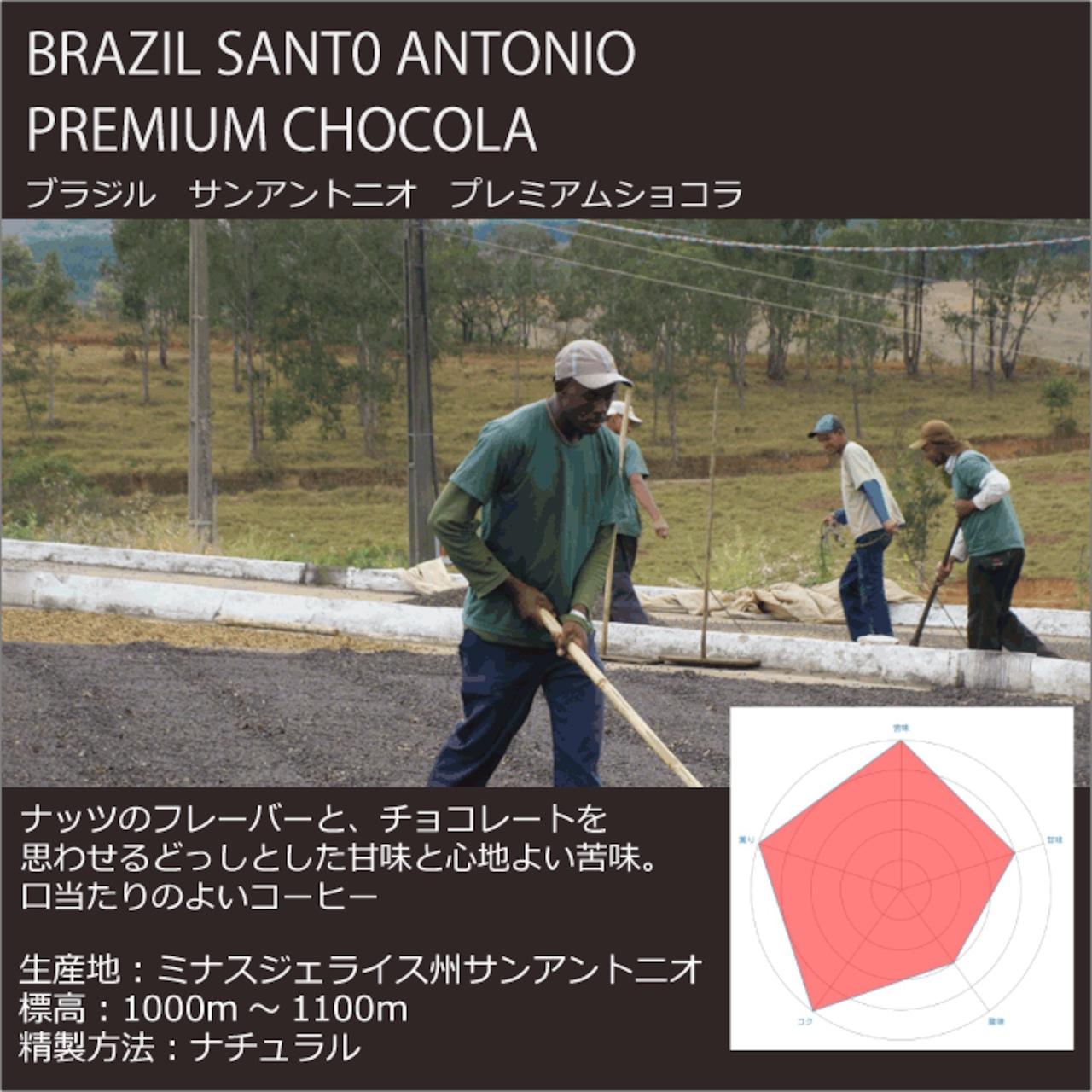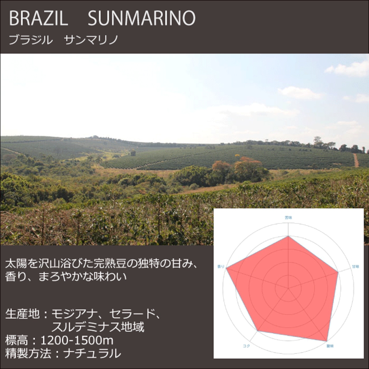 手摘みならではの完熟豆の甘みを感じるブラジルらしいといわれるまろやかなコーヒー
